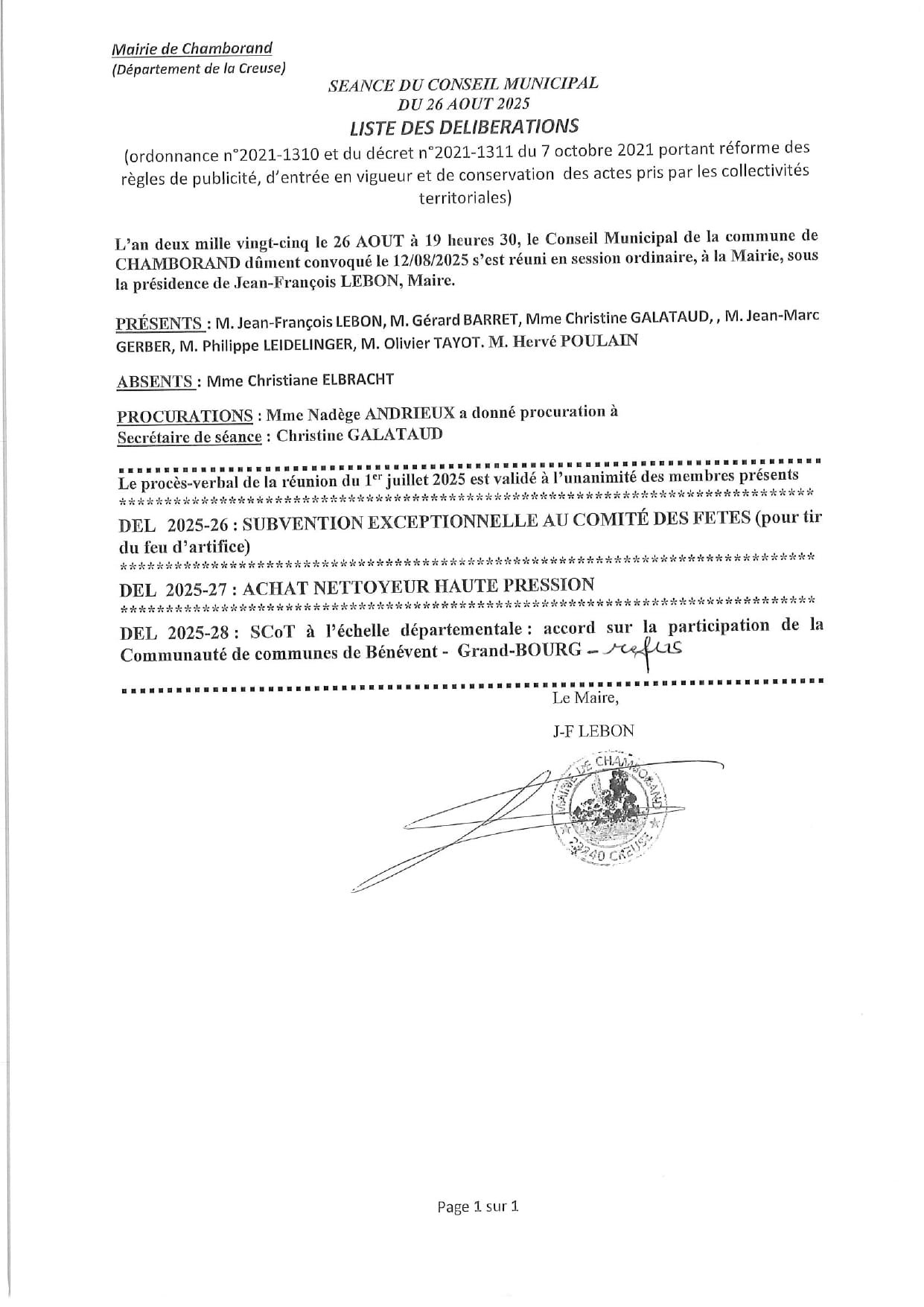 Divers Liste des délibérations suite à la réunion du Conseil municipal du 26/08/2025 M. Le Maireseptembre 1, 2025septembre 4, 2025 M. Le Maire Articles créés 491
