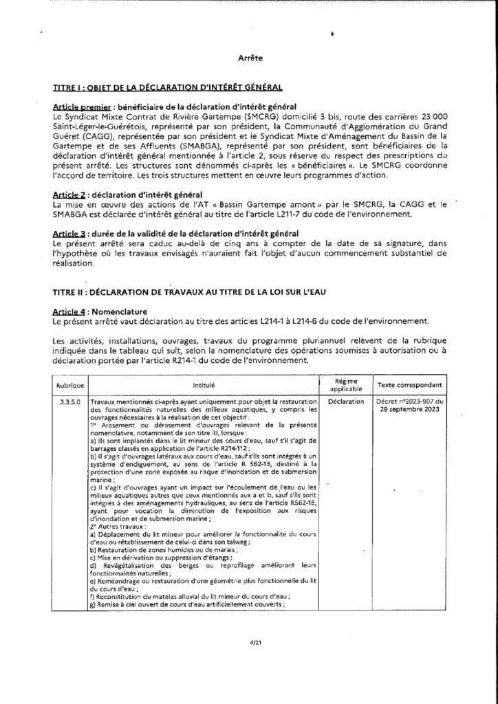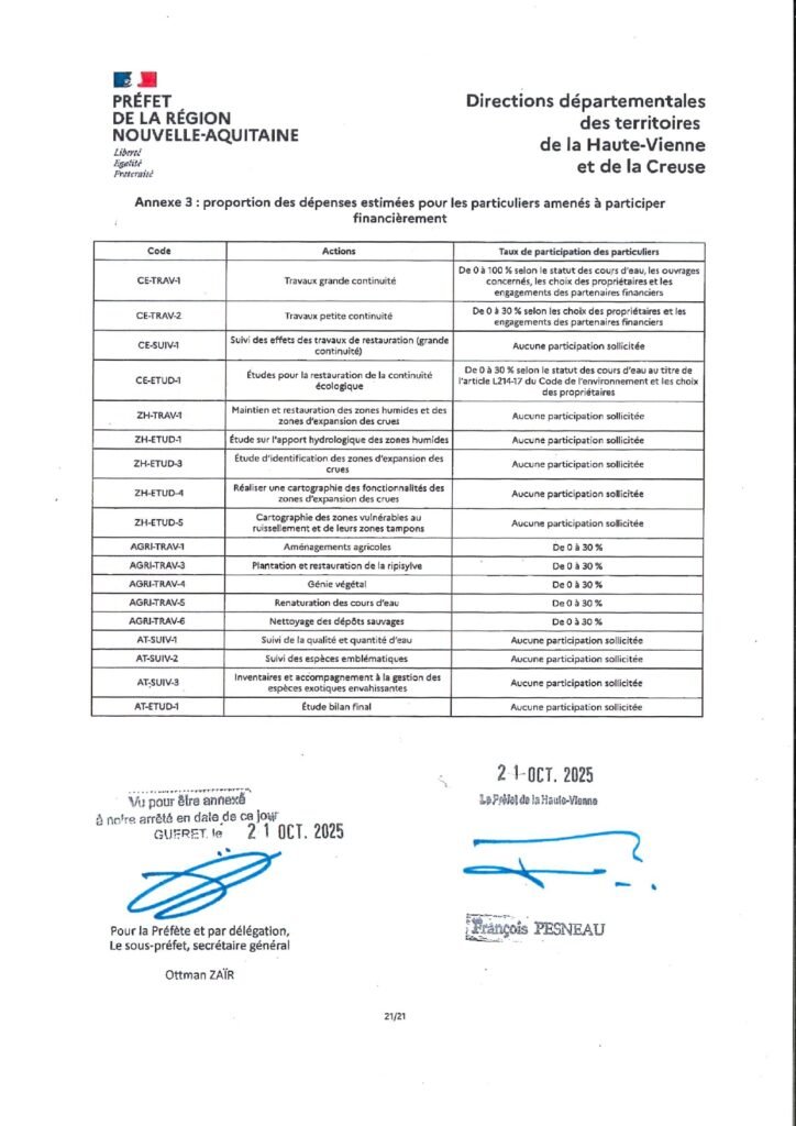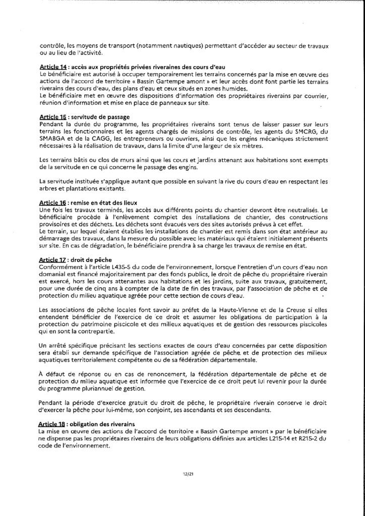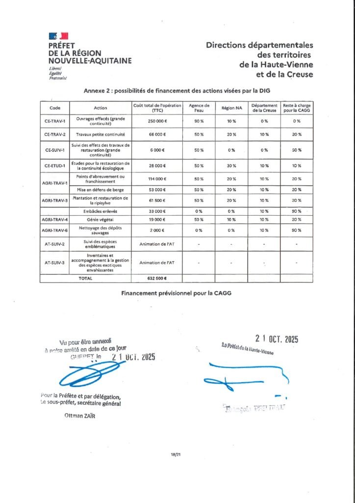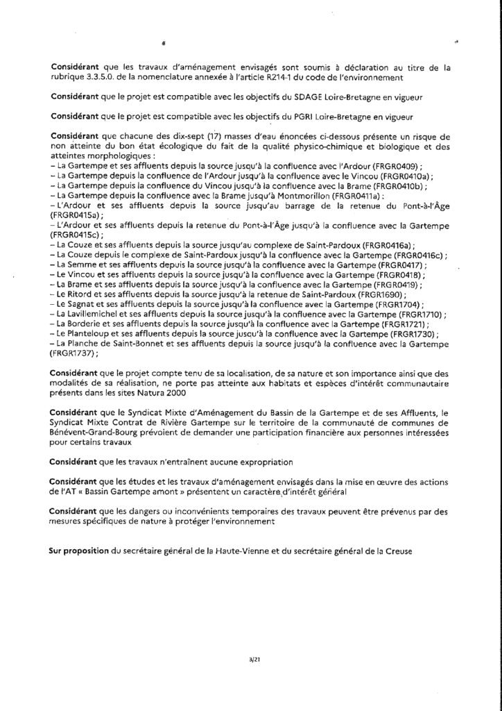 Arrêté préfectoral n°2025/MN/005 du 21 octobre 2025 portant déclaration d’intérêt général et la déclaration environnementale au titre de la réglementation sur l’eau pour la mise en oeuvre des actions de l’Accord de territoire « Bassin Gartempe amont »